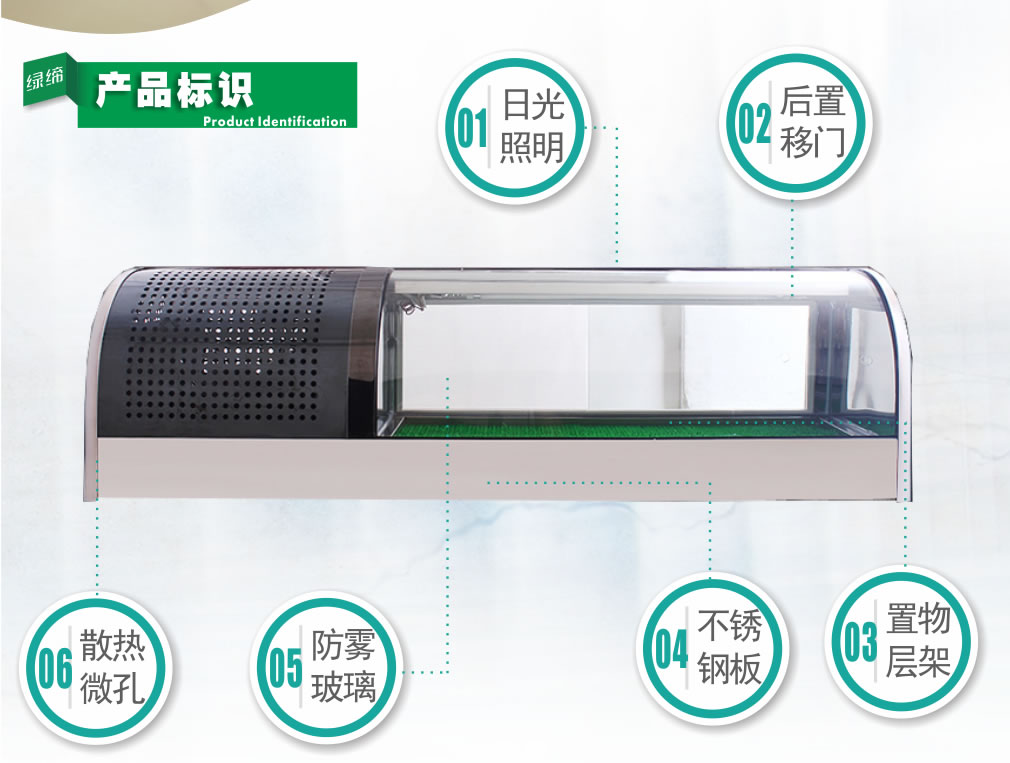 | SCGS-150 | 1.5米雙層壽司冷柜 | 1500*400*510 | 2~10℃ | 220V/200W | R134a |