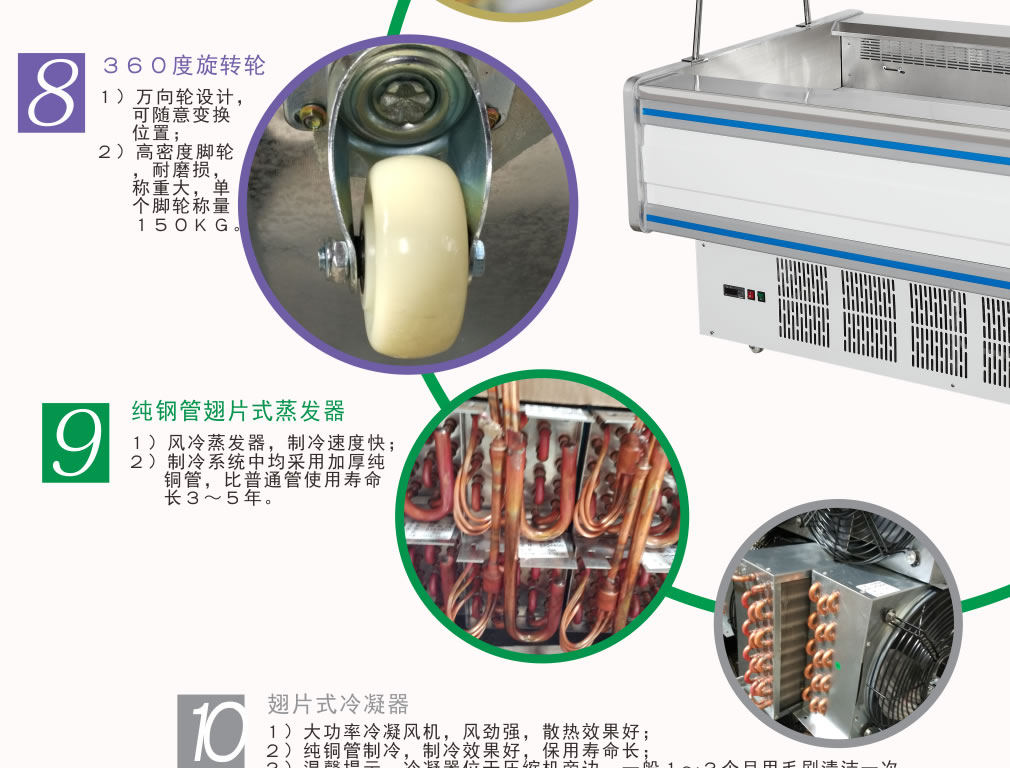 ① 風扇或空調出風口不能正對敞口式冷柜吹風;