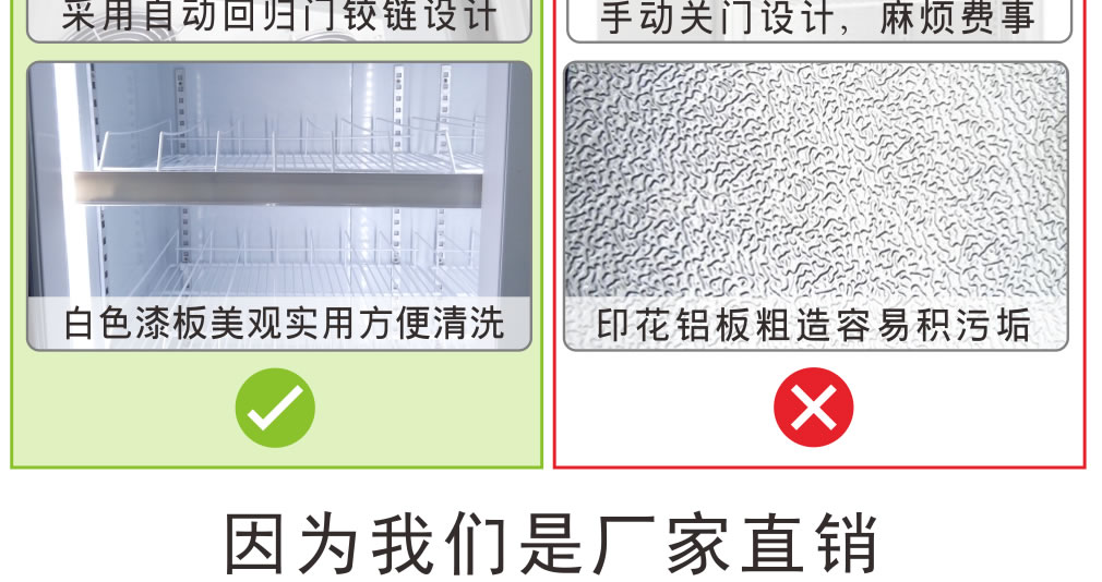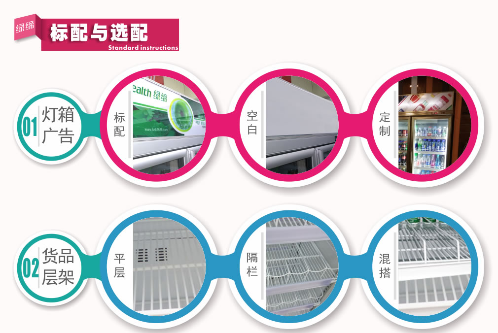 全封閉門封,不銹鋼層架勾,微電腦溫控器,EBM冷風(fēng)機(jī),高強(qiáng)度門鉸,高亮度LED燈,雙層中空玻璃門,360度旋轉(zhuǎn)輪,純鋼管翅片式蒸發(fā)器,翅片式冷凝器