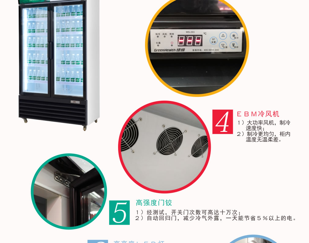 ④ 初次使用時(shí),先空柜運(yùn)行1小時(shí)左右,待柜內(nèi)溫度降下來(lái)后再逐步放入商品,盡量少量多次添加,柜內(nèi)不能添加過(guò)滿(mǎn)。