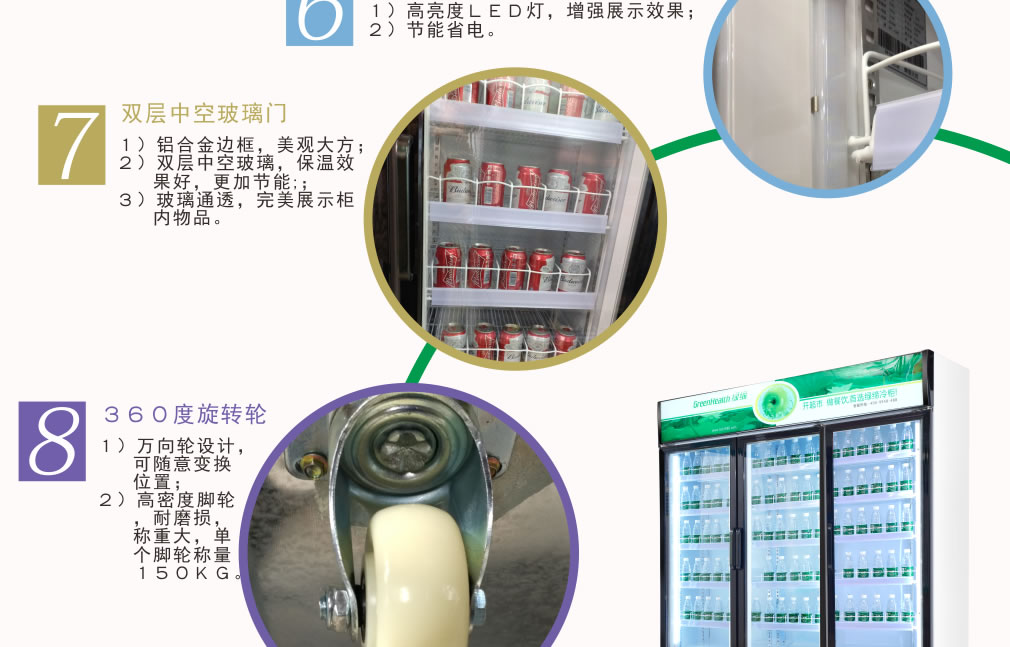 ③ 冷柜內(nèi)外溫差較大時,遇空氣溫度較大的天氣時玻璃門上有水霧凝結(jié),將溫度調(diào)整后即可。