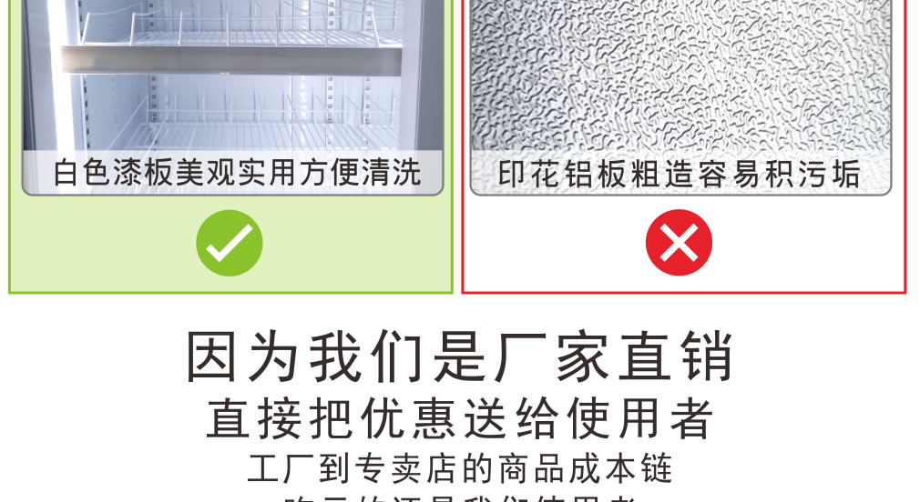 ② 冷柜禁止放在陽光直射的地方,否則因長期達(dá)不到停機溫度,影響冷柜壽命;