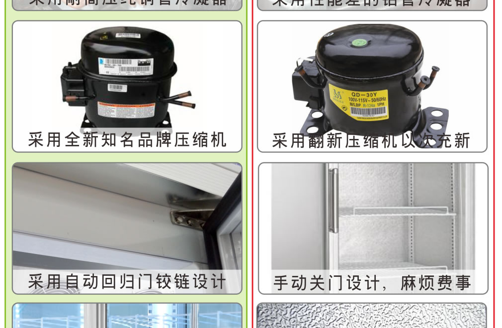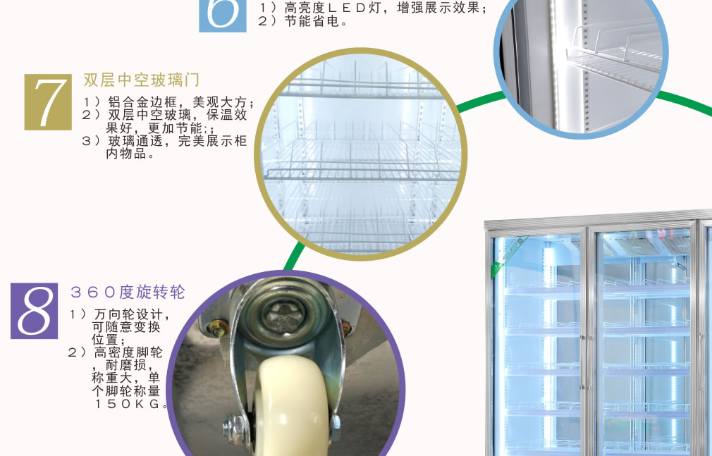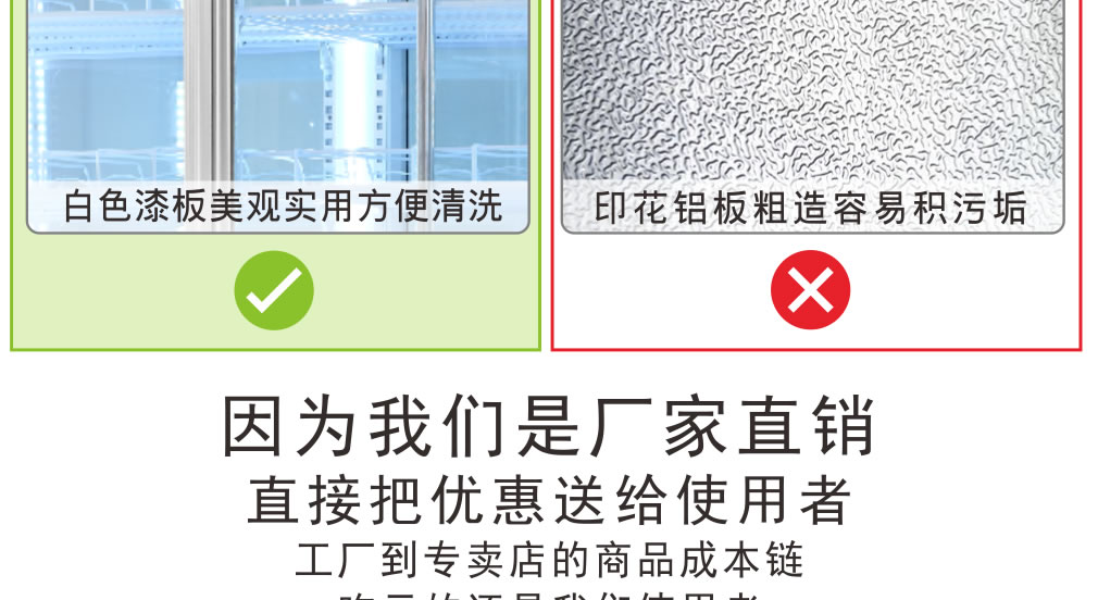 前后開門設(shè)置,前為拉門設(shè)計(jì),后置移門設(shè)計(jì),直風(fēng)冷,360度立體制冷,制冷更均勻,溫度更下平均,短時(shí)間內(nèi)迅速降溫