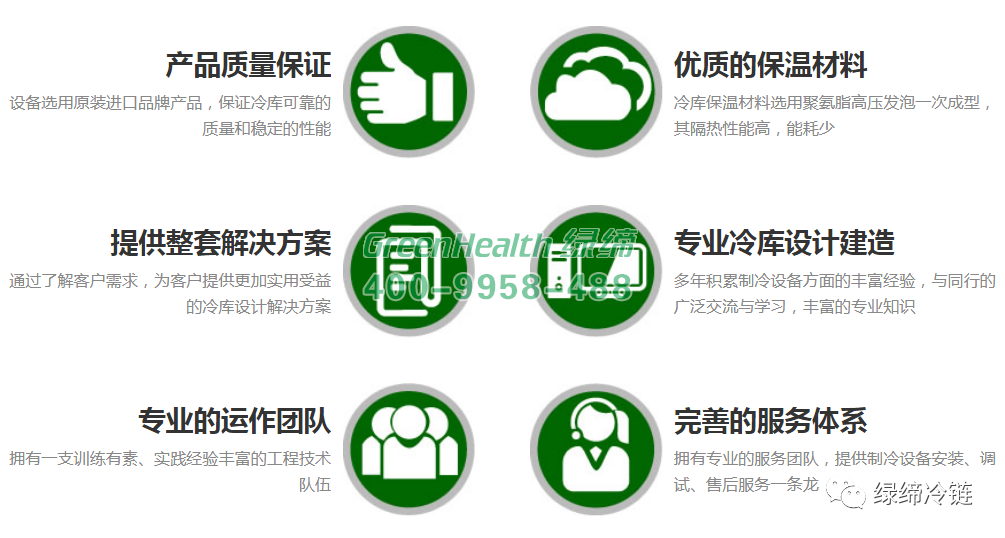 綠締冷庫采用聚氨酯阻燃發(fā)泡料夾心板,導(dǎo)熱系數(shù)低,強度高、隔熱效果好  。
