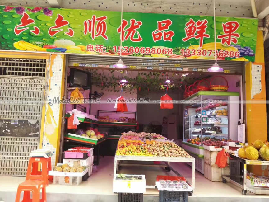 廣州綠菲果園洛溪店購置水果風(fēng)幕柜案