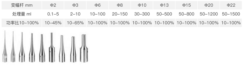 3.超聲探頭采用美標TC4材質的高純鈦合金,探頭形狀:錐形、鞭節(jié)形,發(fā)波形式:垂直超聲。